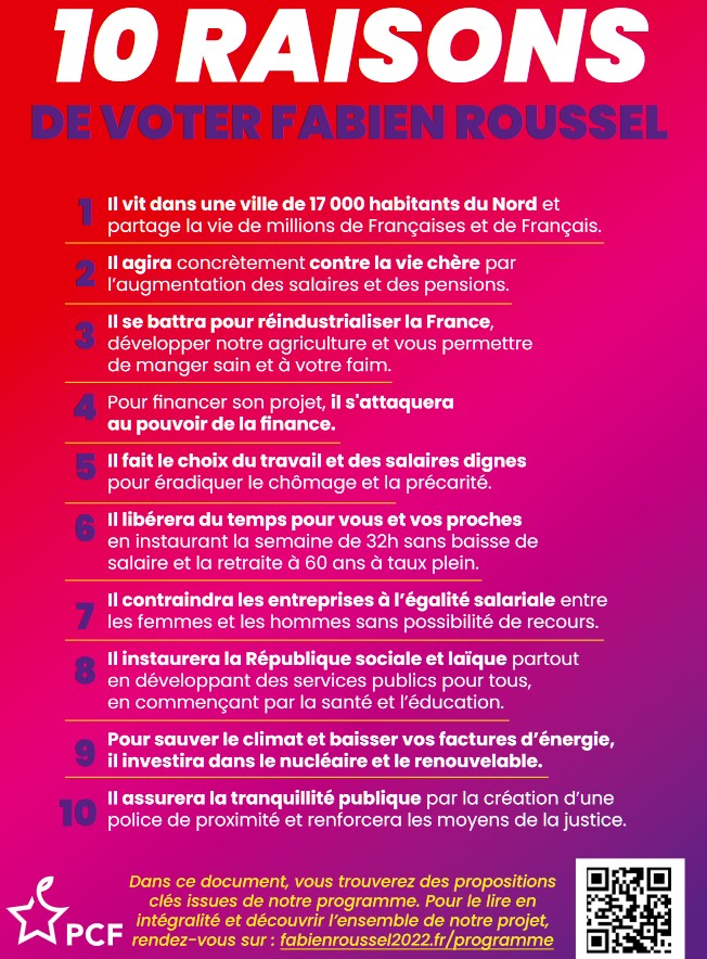Le Programme!pcfbourgbressereve18 févr. 20221 min de lecture.https://d3n8a8pro7vhmx.cloudfront.net/fabienroussel2022/pages/217/attachments/original/1643038967/exe_la_france_des_jours_heureux_LIVRE_stc.pdf?1643038967et aussihttps://www.fabienroussel2022.fr/objectif_1#proposition_uneversion résuméhttps://d3n8a8pro7vhmx.cloudfront.net/fabienroussel2022/pages/217/attachments/original/1643110506/exe_8p_programme_stc_%281%29.pdf?1643110506